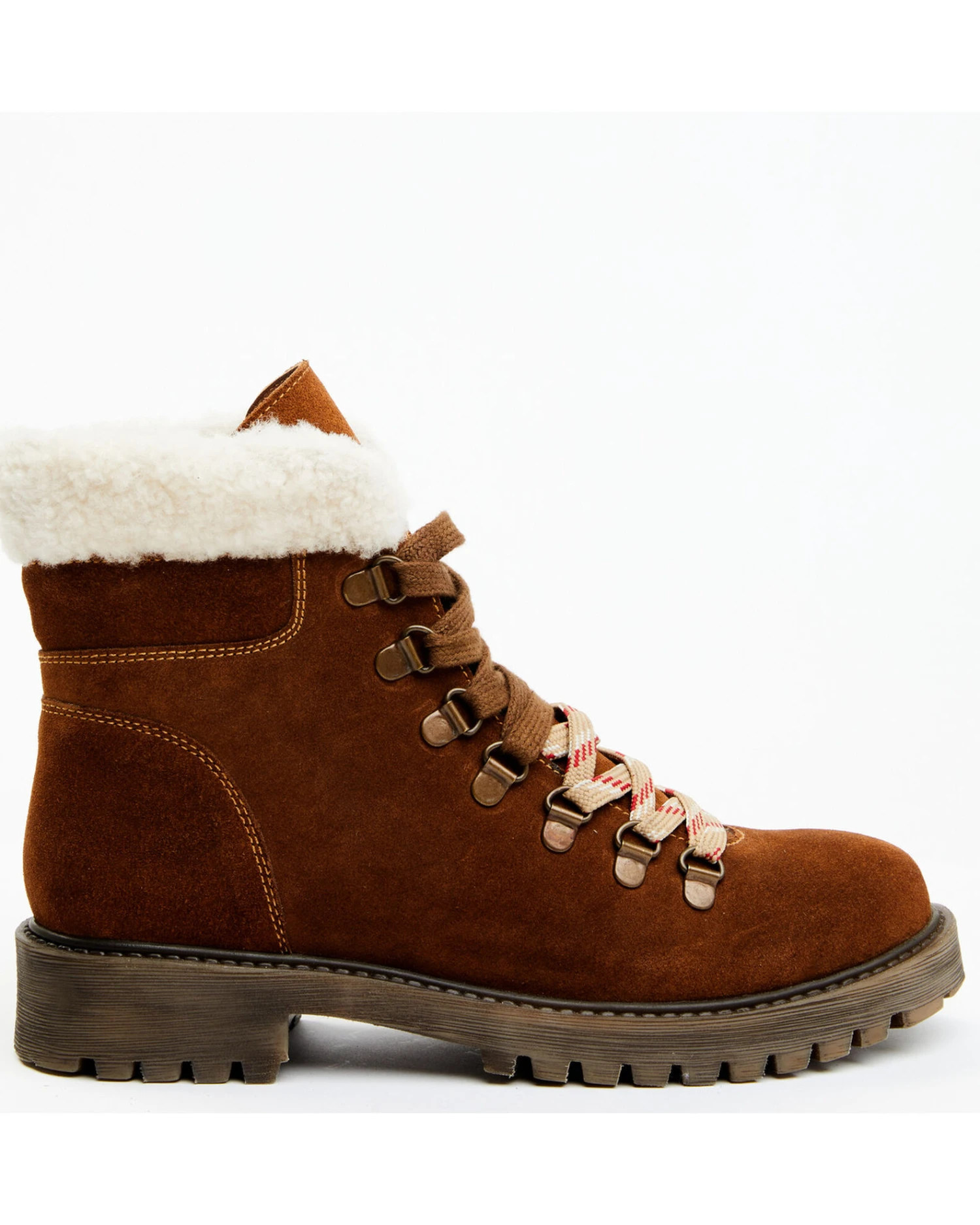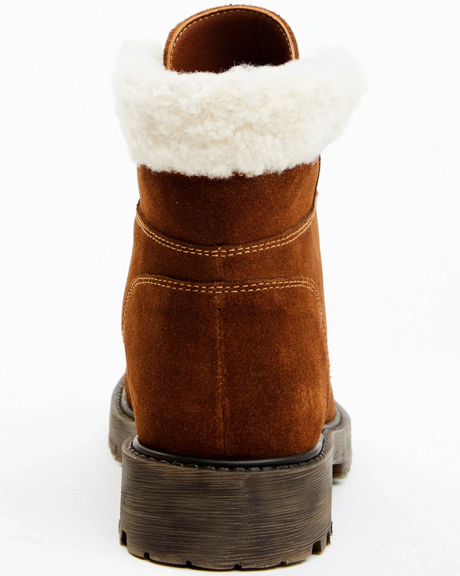 - Genuine suede leather with sherpa collar