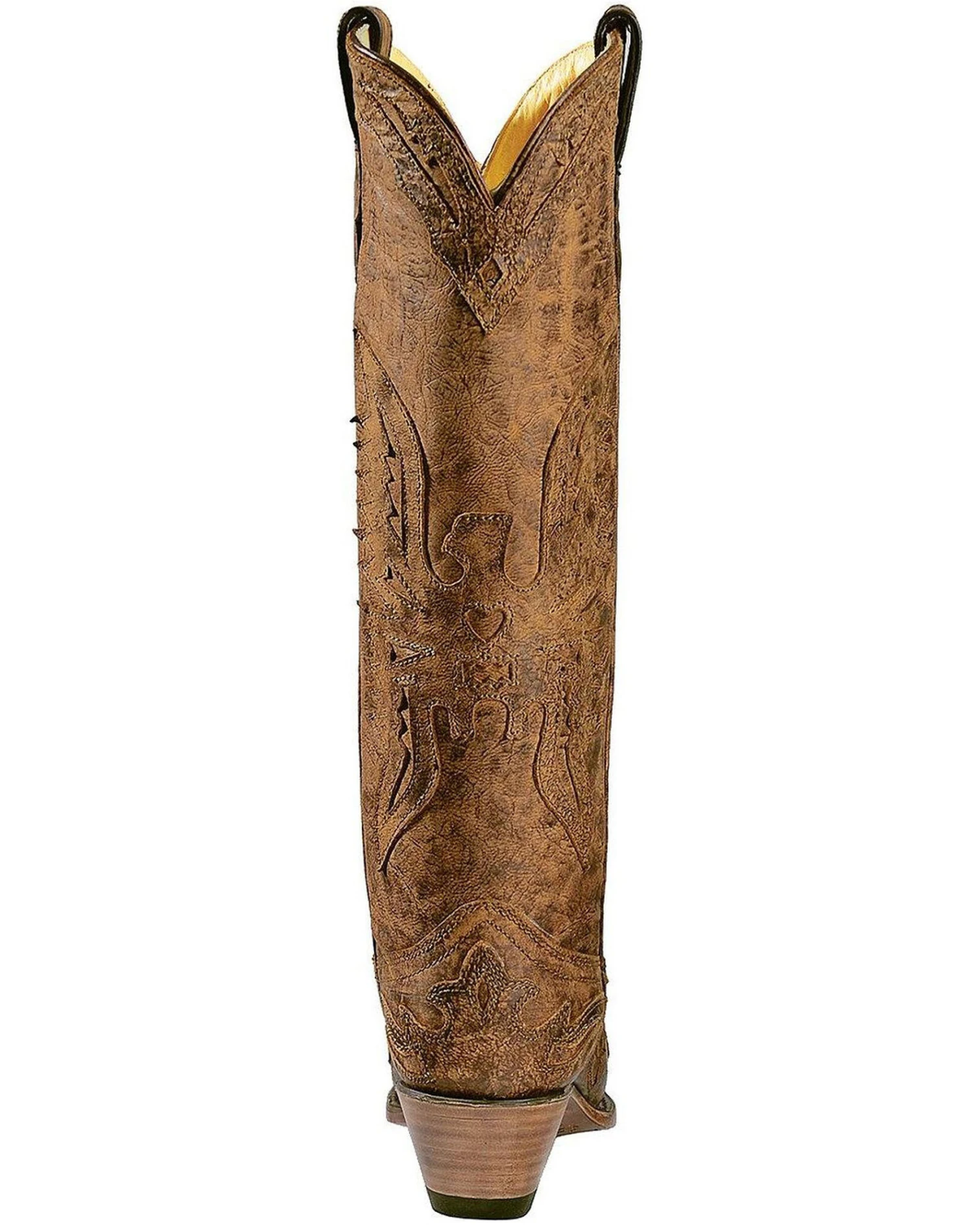Corral Women’s Vintage Brown Eagle Overlay Tall Western Boots – Snip Toe