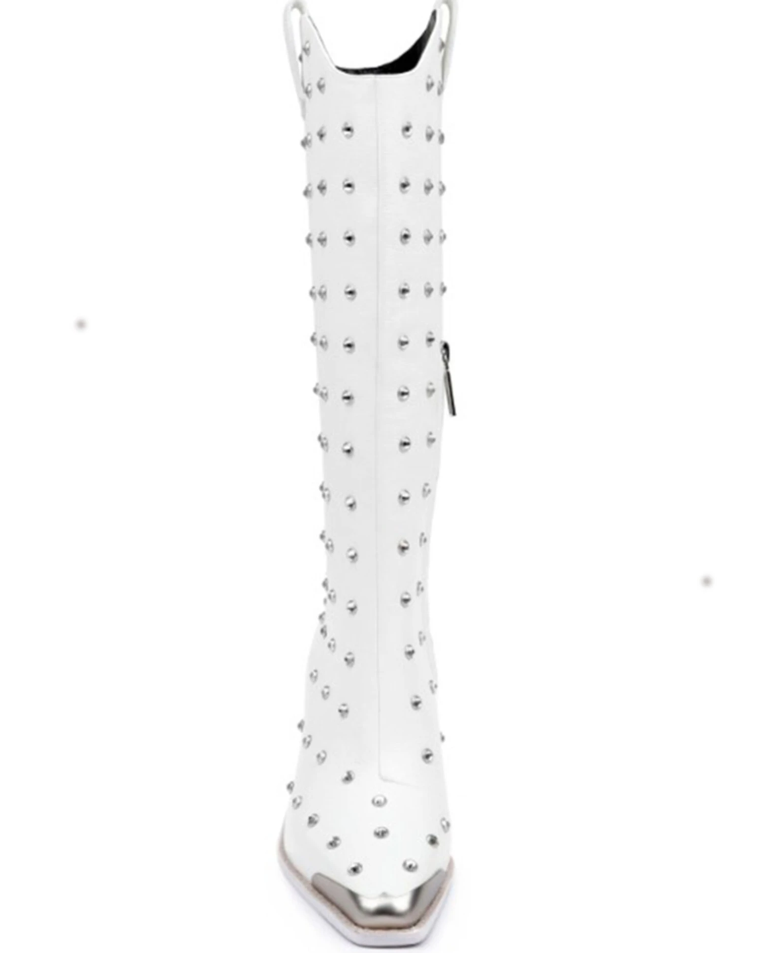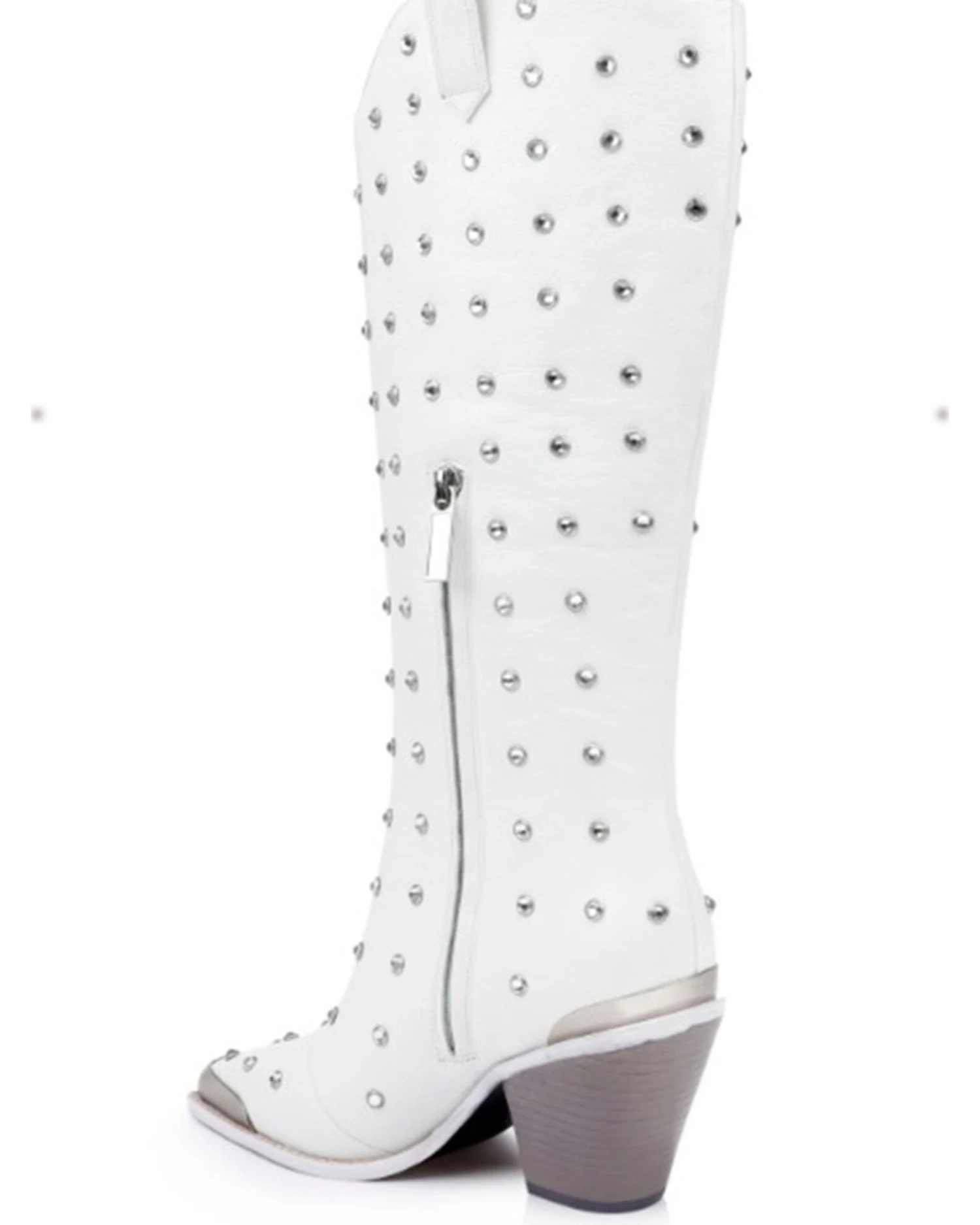- Solid white with studded design throughout