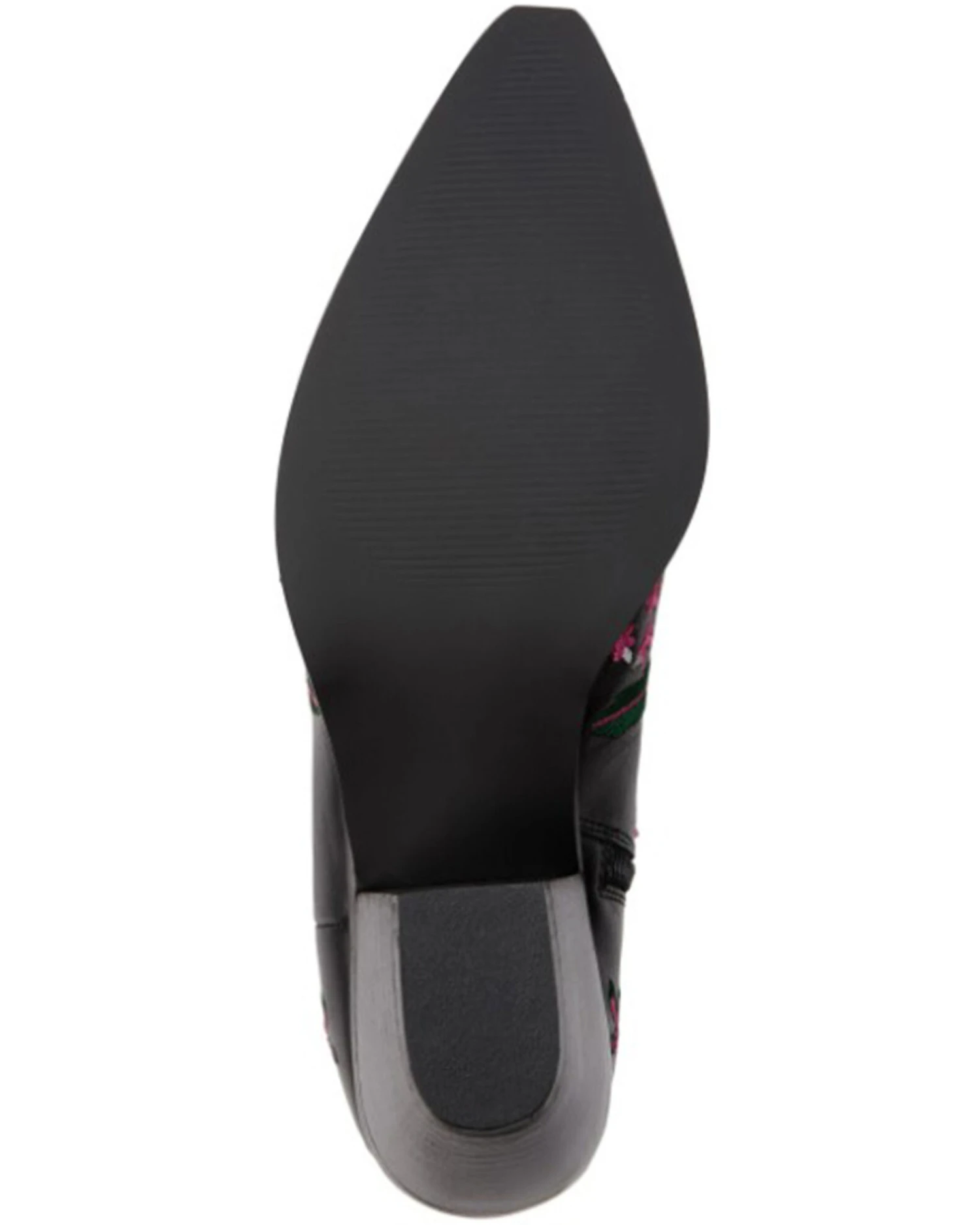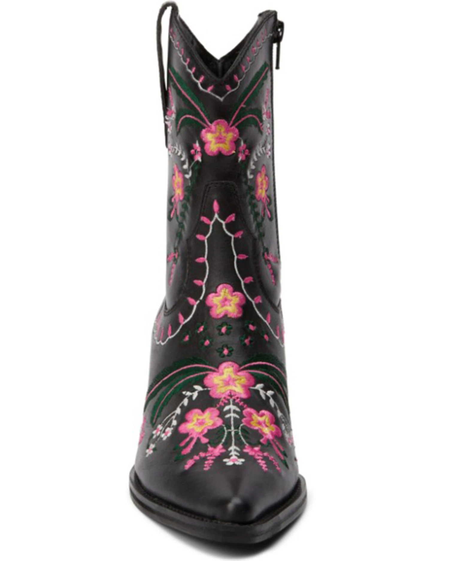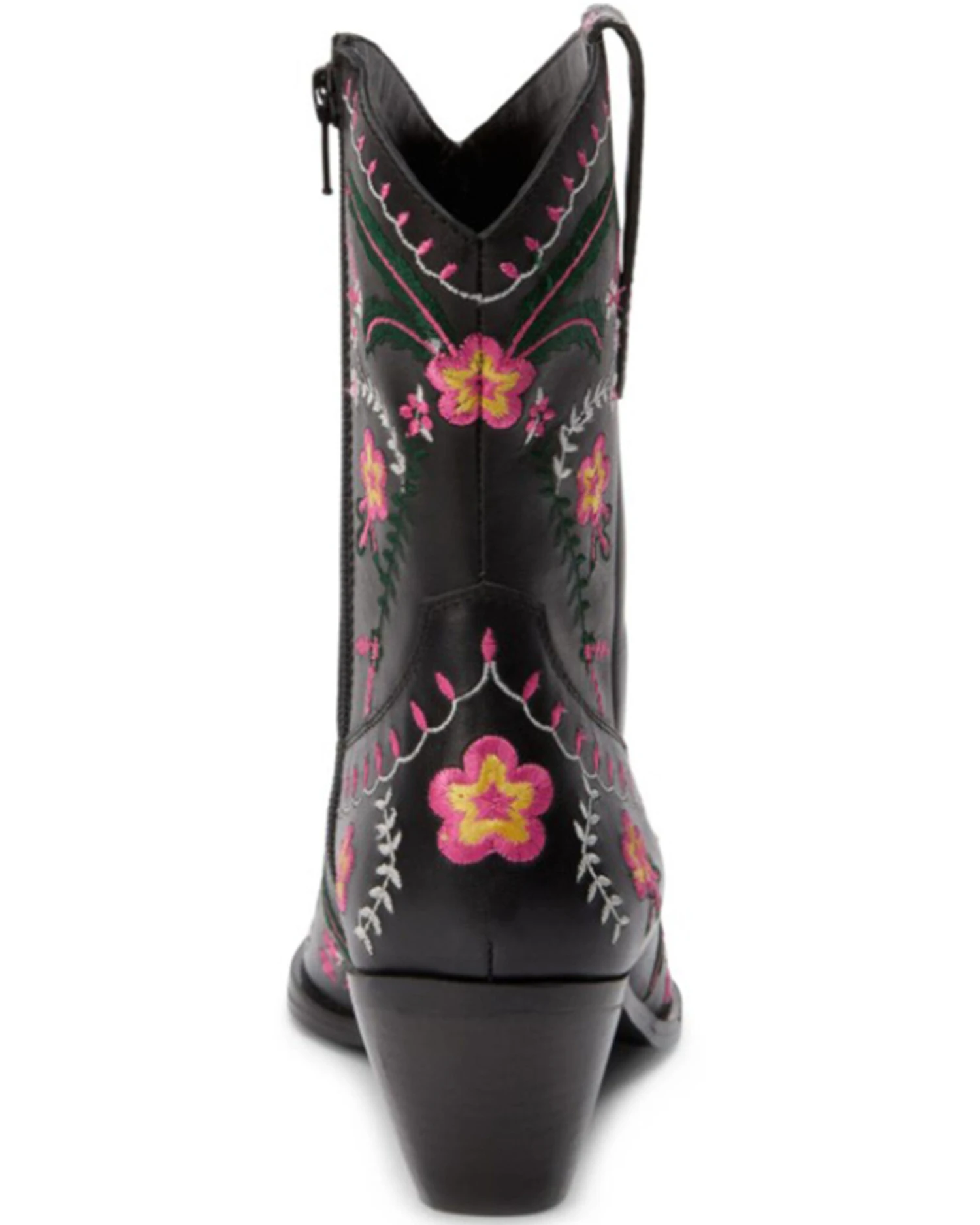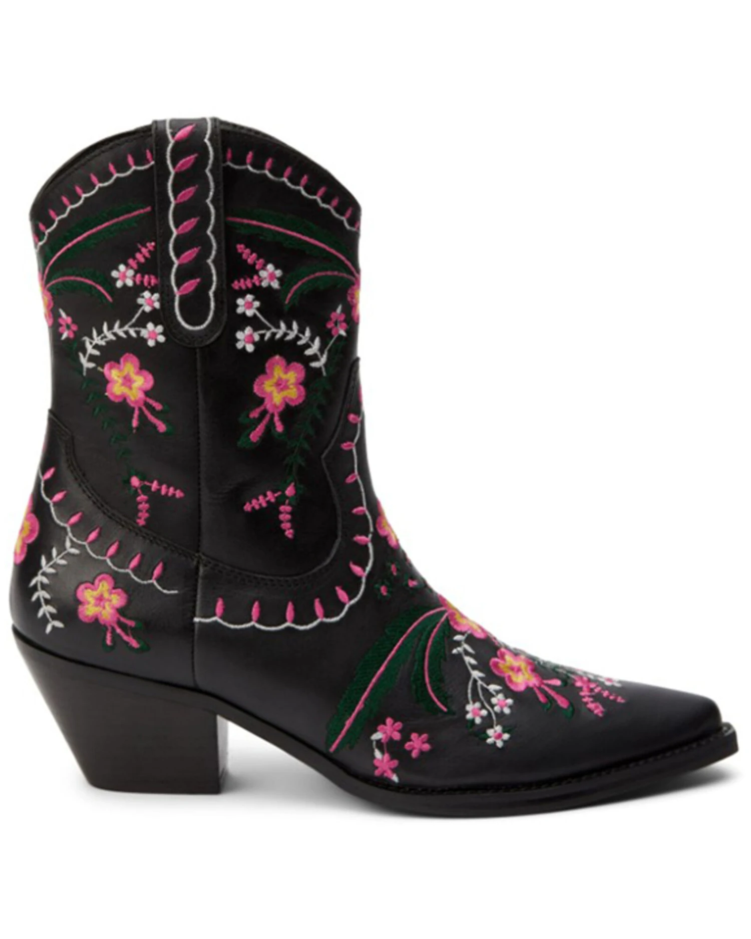 - Black with pink and white floral embroidery throughout