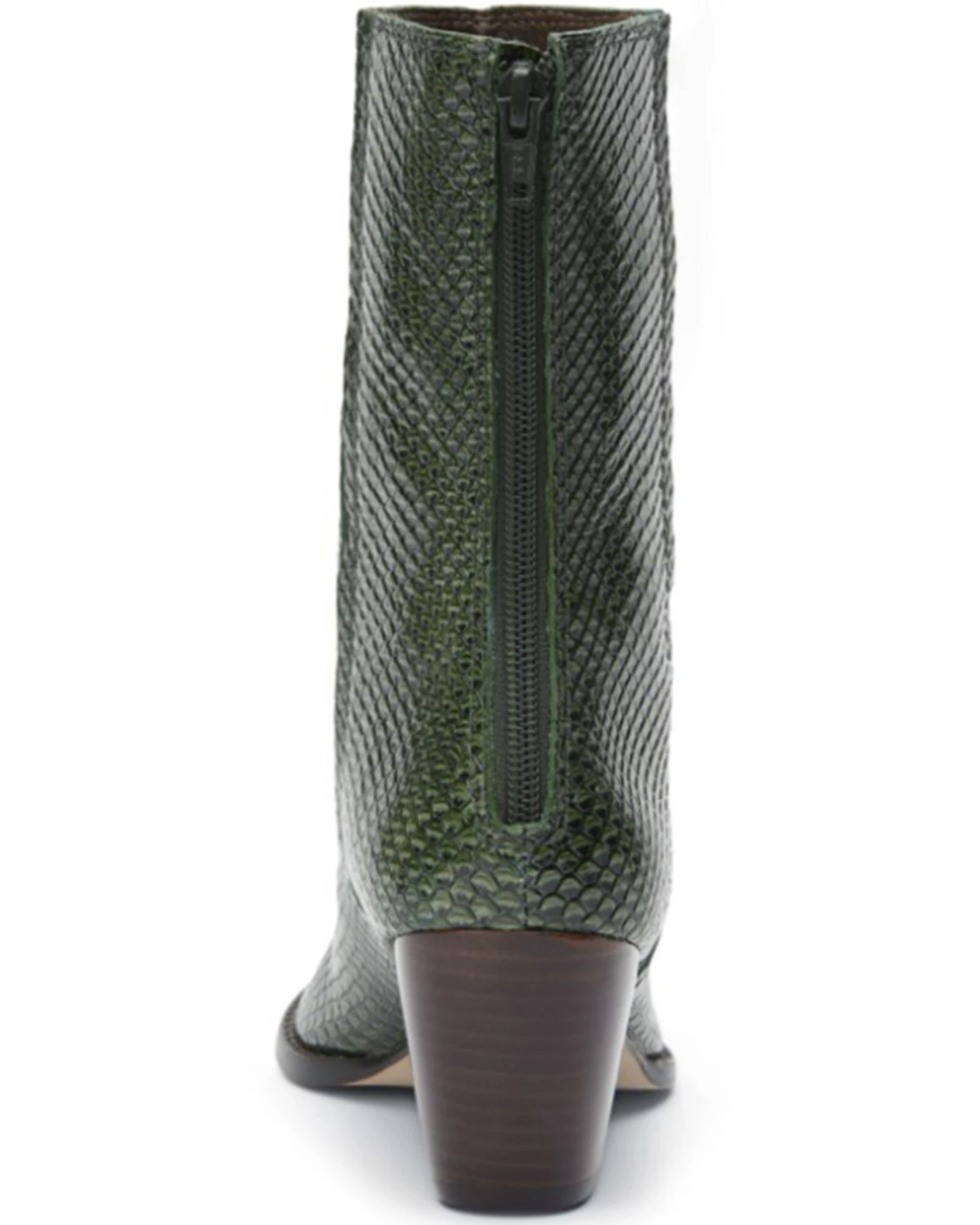 - Dark green embossed snake print design